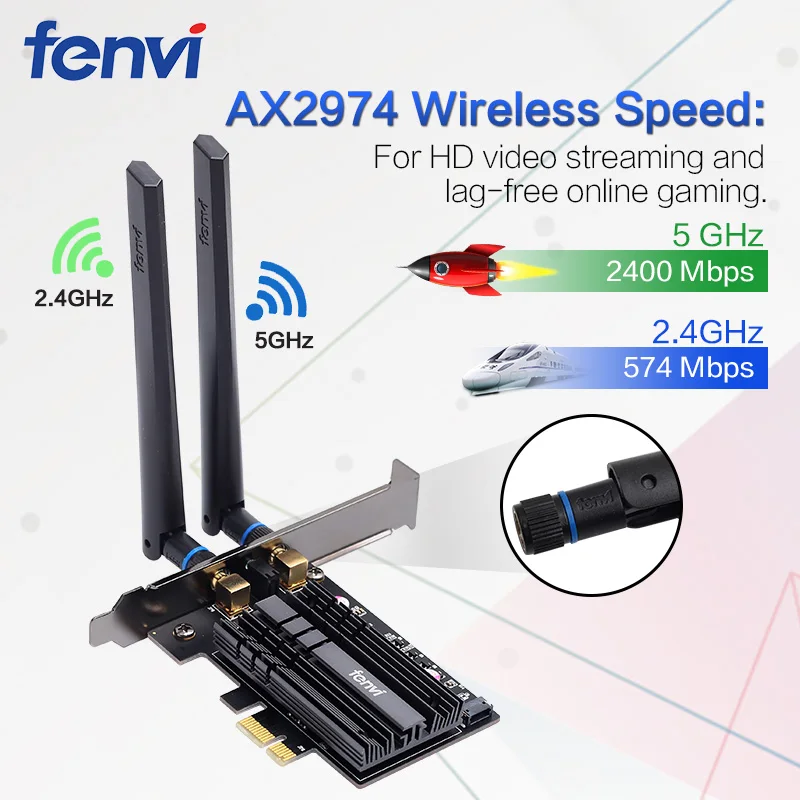 Модель: AX3000 PCI-E ПК Wi-Fi адаптер (смотрите детали); Чипсет: Чипсет Intel AX200; Новый Wi-Fi с Blutetooth 5,0; Стандарт IEEE: 802.11ax/ac/a/b/g/n; Двухдиапазонный 2,4 ГГц-300 Мбит/с/5Ghz-2400Mbps; Примечание: скорость до 2400 Мбит/с (маршрутизатор должен поддерживать 802.11ax); Поддержка MU-MIMO; Операционные системы: поддерживают только Windows 10*64 бит и Linux; Совместимость с: почти компьютером с разъемами PCI Express (PCI-E 1X/4X/16X); Специально разработанный радиатор обеспечивает стабильную и надежную непрерывную работу; Антенны с высоким коэффициентом усиления 6 дБи обеспечивают лучший прием сигнала.