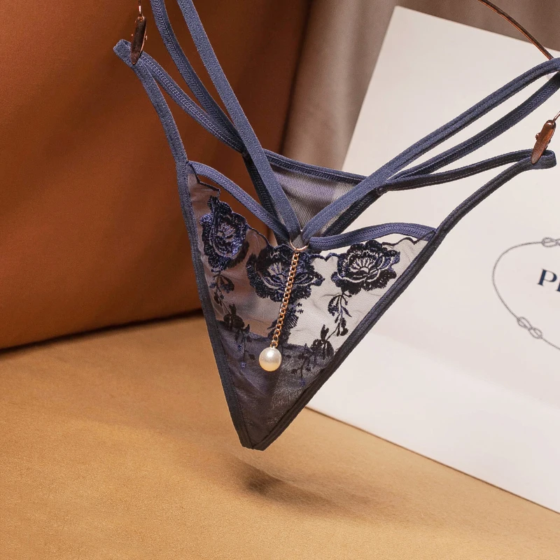 Сексуальные соблазнительные кружевные трусики с заниженной талией, украшенные жемчугом, прозрачные сетчатые трусики, флирт с сексуальным пучком, стринги 40