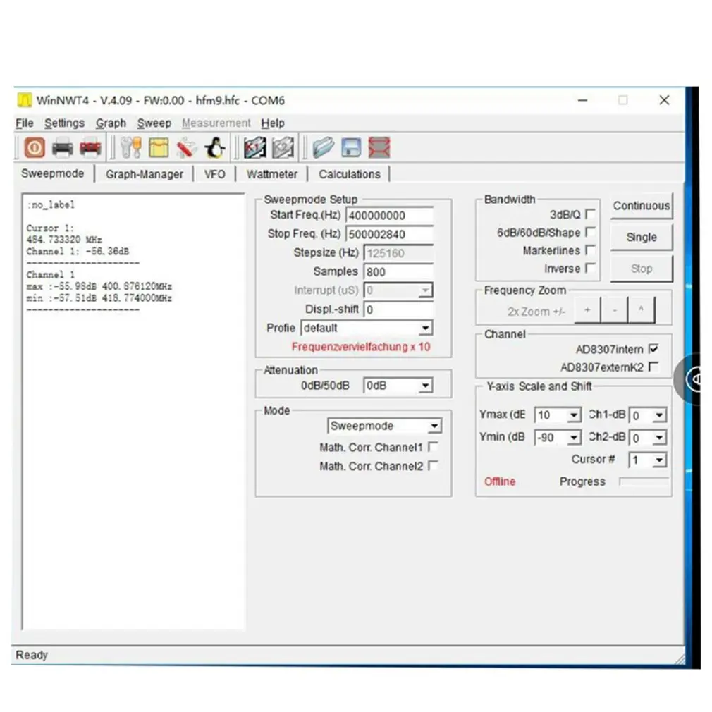 Шаг развертки: ≥ 33 ~ 68,75 МГц/125 Гц, 68,75 ~ 137,5 МГц/250 Гц, 137,5 ~ 275 МГц/500 Гц, 275 ~ 550 мгц/1 кГц, 550 ~ 1100 МГц/2 кГц, 1100 ~ 2200 МГц/4 кГц, 2200 ~ 4400 МГц/8 кГц,