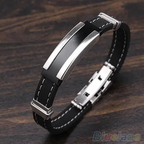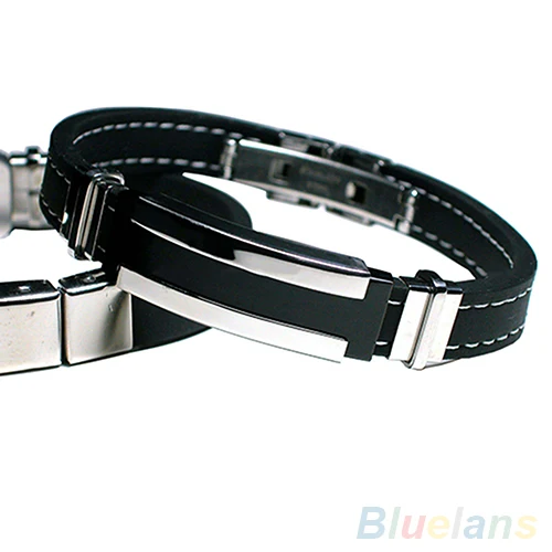 Лидер продаж! Мужские часы в стиле панк застежка стильный стальной резиновый браслет модный браслет подарок для парня модный рок браслет для мужчин