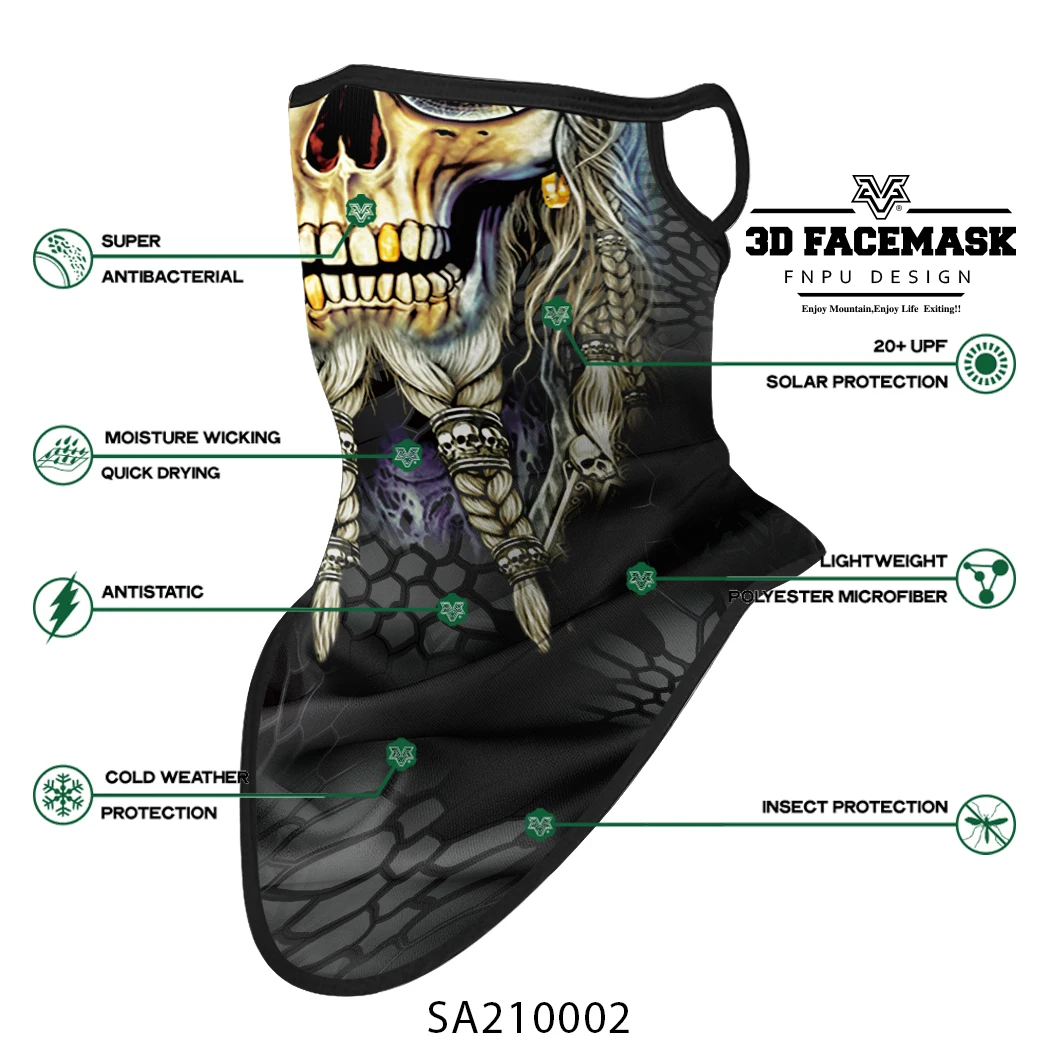 Велосипедная бандана для ушей с объемным черепом