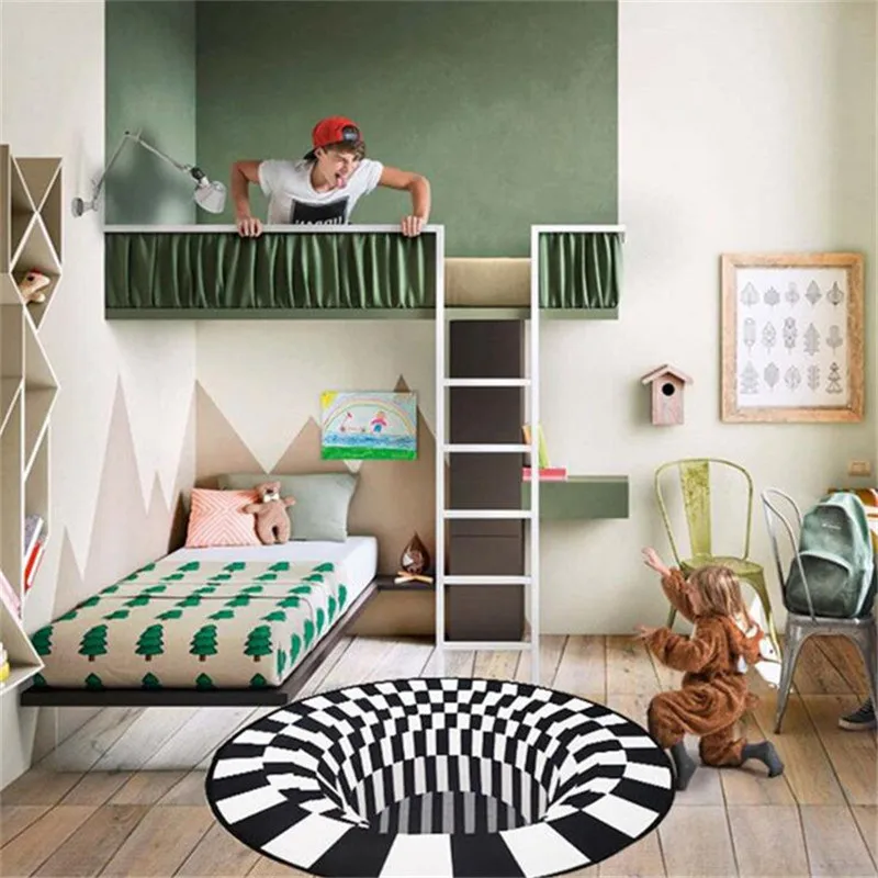 3D вихревой ковер черно-белая сетка бездонные отверстия Иллюзия ковер для гостиной спальни Противоскользящие коврики для дома модные ковры