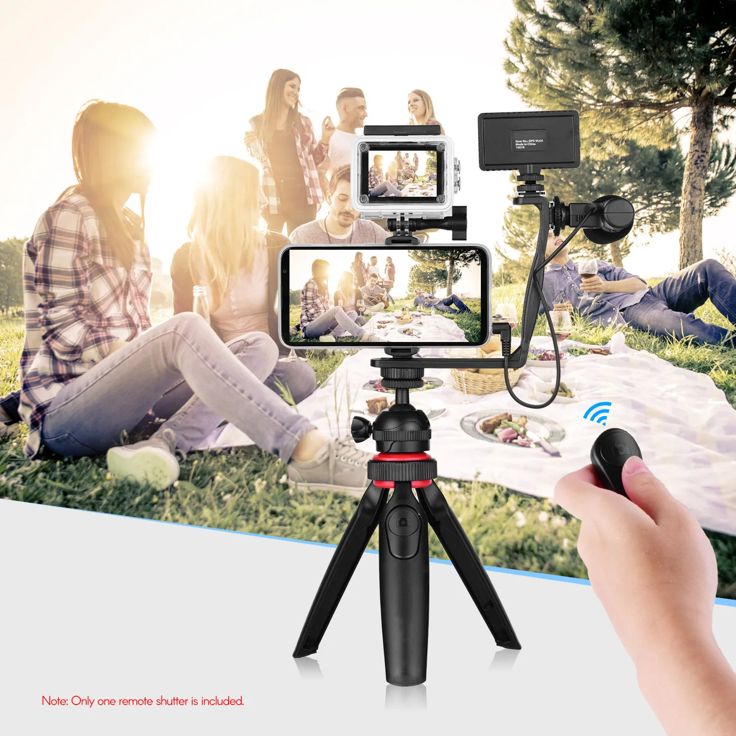 Полный набор видео Vlog аксессуаров: В комплект входит Штатив с шаровой головкой, зажим для телефона с адаптером для камеры, конденсаторный микрофон и светодиодная подсветка, полная система для записи телефона и камеры Vlog.