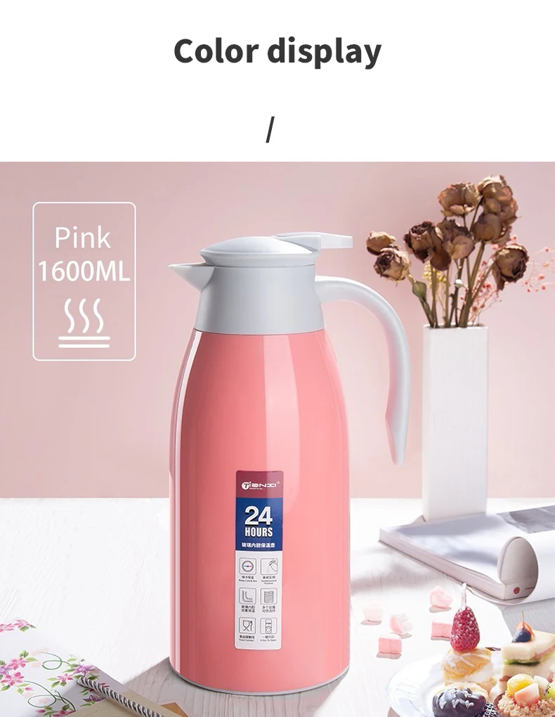 Премиум Материал: вакуумная Посеребренная стеклянная подкладка, без BPA 54 унции (1,6 литра) Большая емкость может быть удовлетворена требованиями повседневного использования. Простота в использовании: удобная ручка, Налейте Носик и нажмите кнопку для легкого разлива одной рукой. 24 часа тепла и холода: двухстенная вакуумная изолированная конструкция, чтобы убедиться, что напиток может оставаться горячим или холодным до 24 часов. Широко используется: можно использовать d для хранения горячих и холодных напитков, таких как кофе, чай, молоко, холодные напитки, вода и многое другое. Идеально подходит для семейного, офисного, наружного и ресторанного использования. Мы всегда стоим за нашими продуктами, если вы не удовлетворены по какой-либо причине, пожалуйста, не стесняйтесь связаться с нами, мы постараемся сделать все возможное, чтобы вы остались довольны.