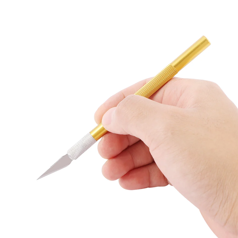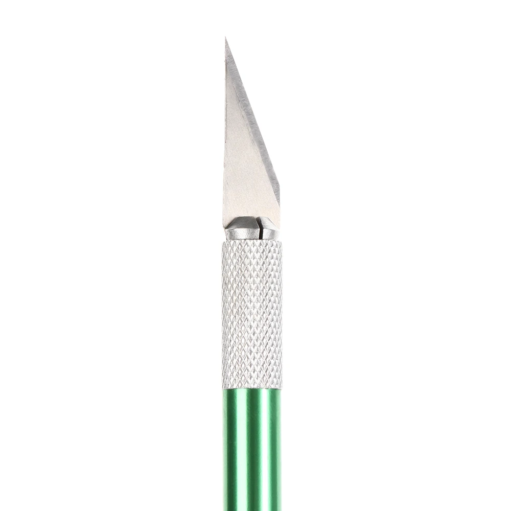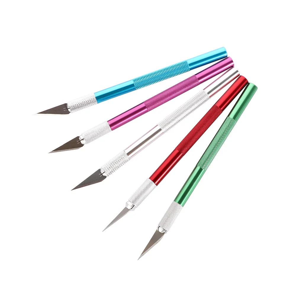 Материалы: металл Цвет: серебристый/красный/зеленый/синий/фиолетовый/золотой Вес: прибл. 18 г Размер: приблизительно 149*8 мм Посылка включает в себя: 1 комплект * Нож для рукоделия с 6 лезвиями