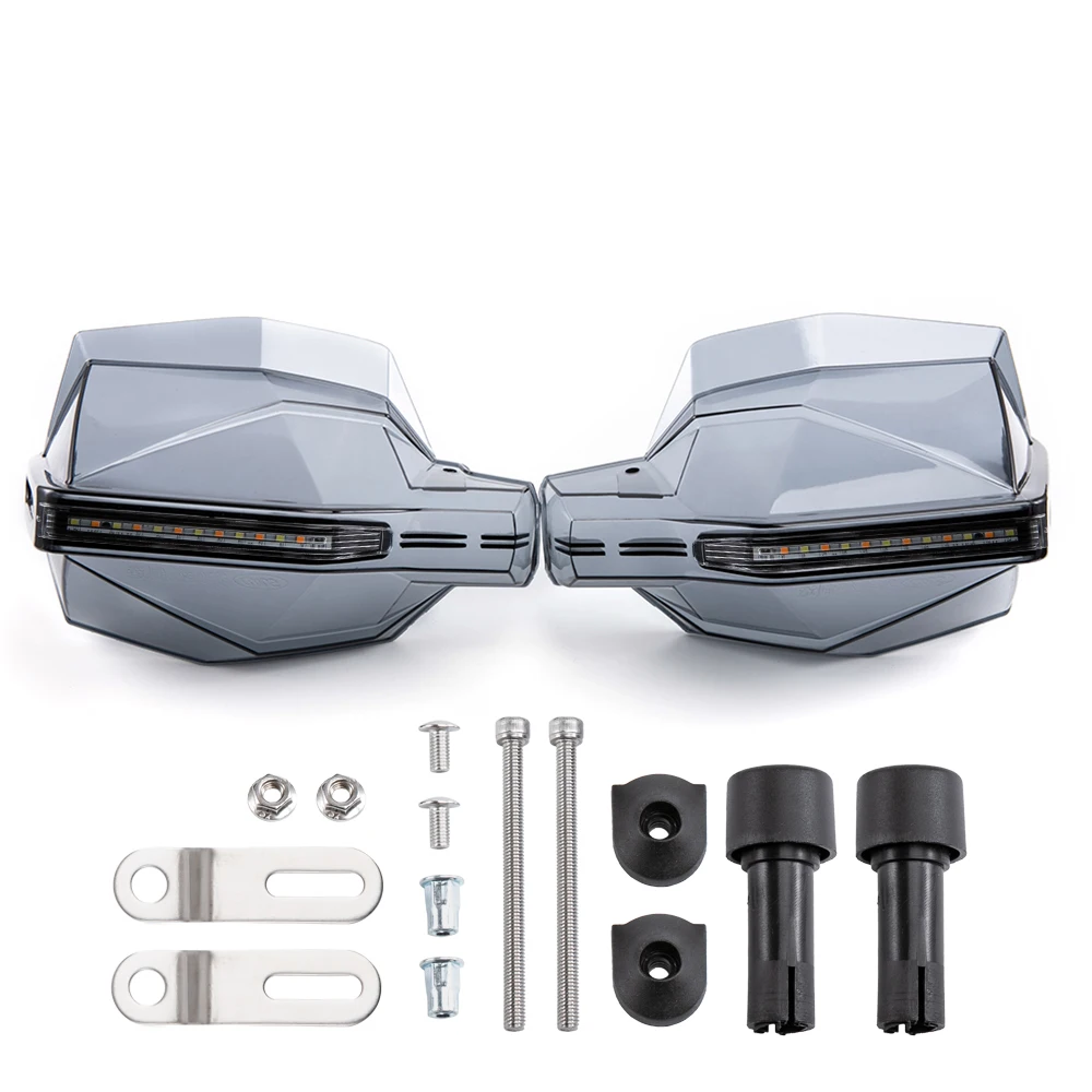 Универсальный, подходит для большинства мотоциклов Простая установка, высокопрочный полипропиленовый пластик делает его долговечным для длительного использования Защищает руки и управление Отлично блокируя ветер, продувающий поперек. Хорошо защищает руки, когда вы за рулем Светодиодная конструкция высокой яркости для обеспечения безопасности во время вождения. Применимость: подходит для всех креплений к рулю 22 мм (7/8) с внутренним диаметром руля от 13 мм до 17 мм