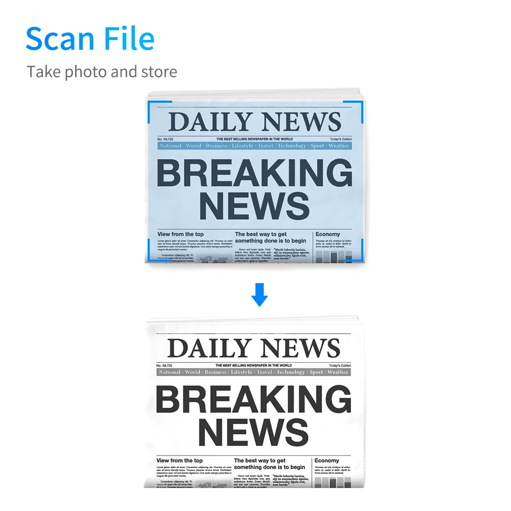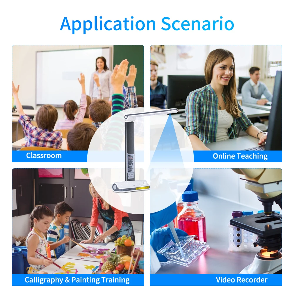 Поддержка сканирования тестовой бумаги, домашней работы, документов, книг, журналов, материалов объекта и т. д. размер сканирования до А4. Широко используется в классе, онлайн-обучении, каллиграфии и живописи и т. д., это может эффективно повысить эффективность нашей работы.