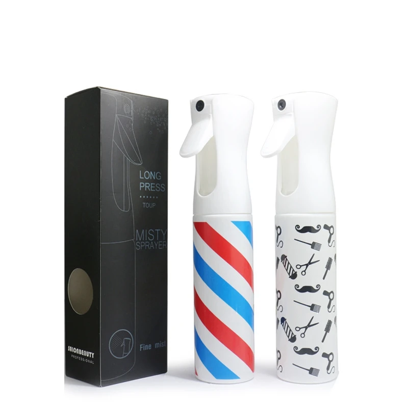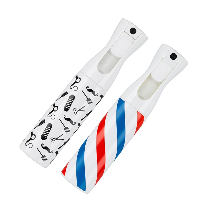 2 шт. пустая бутылка для парикмахерских спрей: 1 шт. вращающаяся полоса и 1 шт. усы и ножницы