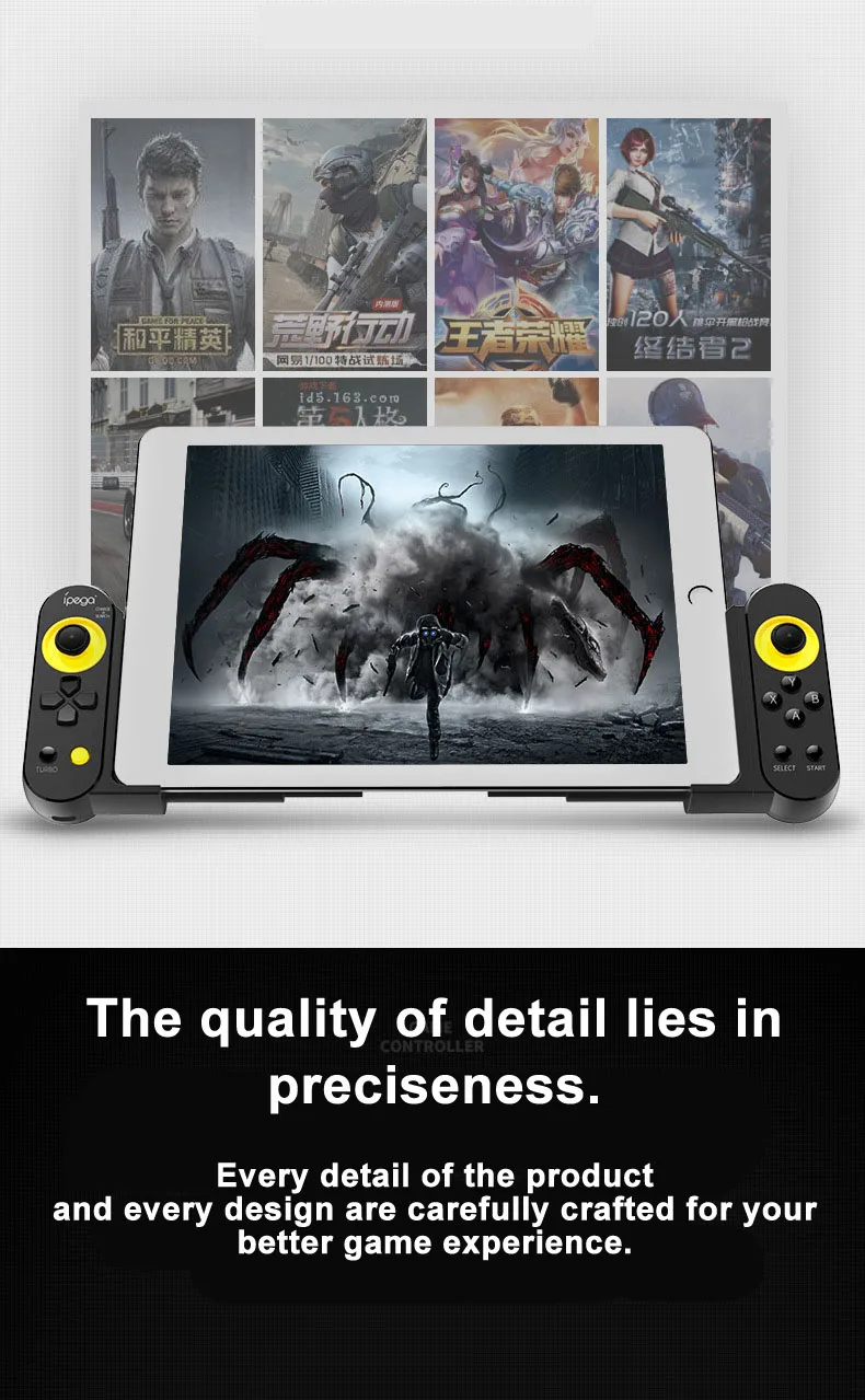 【Plug and Play】ipega PG-9167 растягивающийся беспроводной игровой контроллер, продукт поддерживает Android / iOS режим прямого воспроизведения, поддержка дизайна мобильных игр, нет необходимости в резервных игровых платформах и сложных настройках и активации (Поддержка Android 6,0 или выше, iOS11.0 или выше). [Применимые продукты] поддержка проводного модуля преобразования аудио, не влияет на использование проводного внешнего аудио, поддержка IPHONE 6 6S 7 8 XR XS phone11 для IPAD tablet, поддержка смартфонов Samsung для Galaxy S9/S9 + S10/S10 + note10 OPPO R17 VIVO X23 X27. 【Usage】съемная ручка для замены, правая ручка может быть удалена и заменена, левая ручка может использоваться в качестве одной руки (поддержка горячей вилки), может работать одной рукой или обеими руками. 【With телескопическая Function】Suitable для различных размеров оборудования, горизонтальный растяжения длина 135-250 мм, 5,5-10 дюймов, может быть использован для того чтобы держать Новинка для IPAD pro планшет. 【Эргономичный дизайн 】продукт поддерживает функцию TURBO burst, которая позволяет игрокам получить лучший игровой опыт в игре. Эргономичная структура, удобная на ощупь. Встроенный литиевый аккумулятор. После зарядки, он может быть устойчивым в течение 15 часов выше.