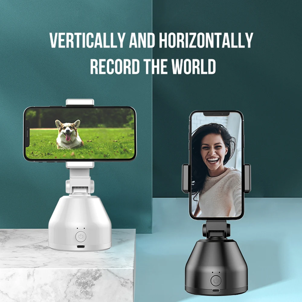 Умный держатель для селфи, держатель для отслеживания, вращение на 360 °, автомобильный держатель для телефона с функцией слежения за лицом, крепление для камеры Vlog, держатель для телефона, портативный смарт-трек для селфи для всех iPhone и Android, Прямая поставка
