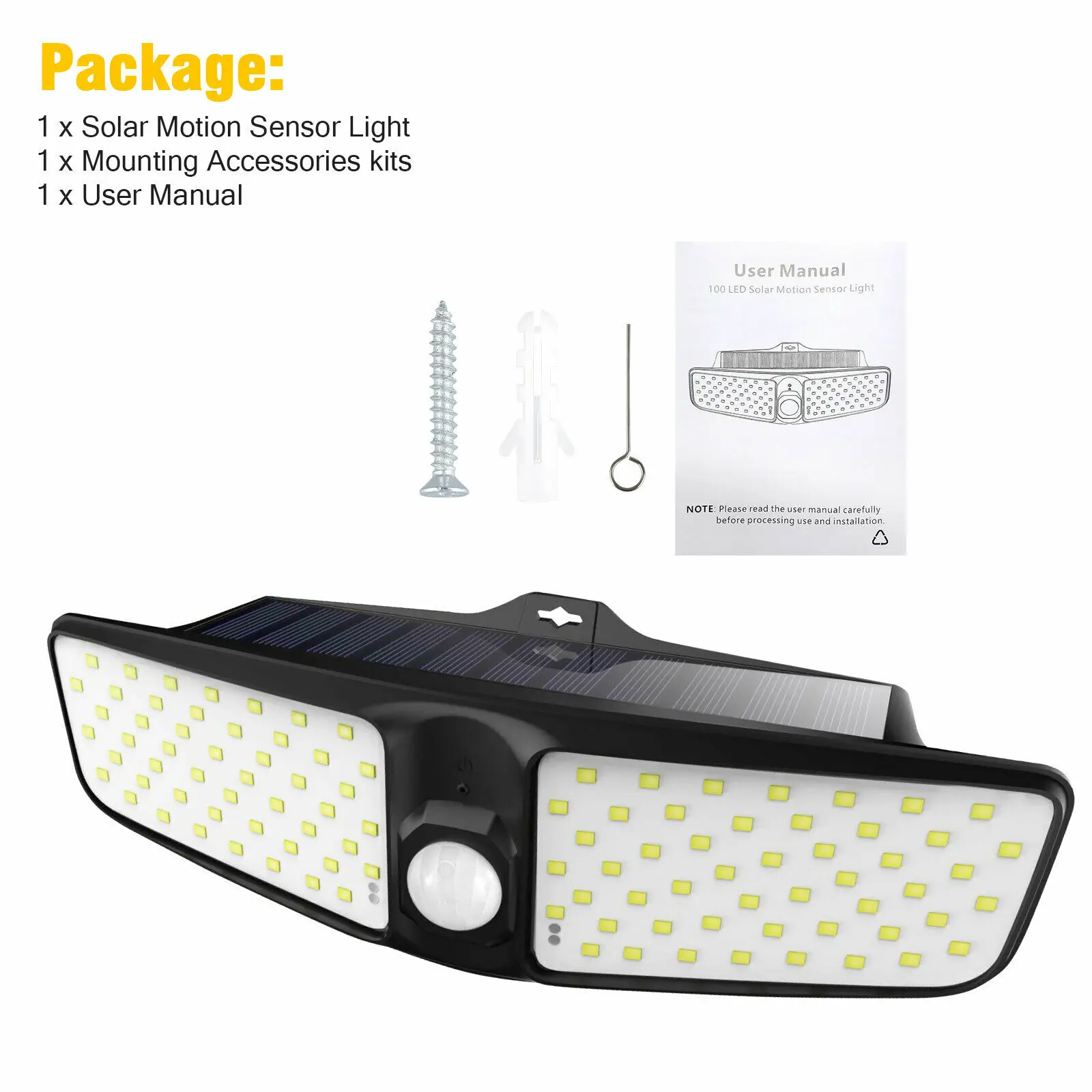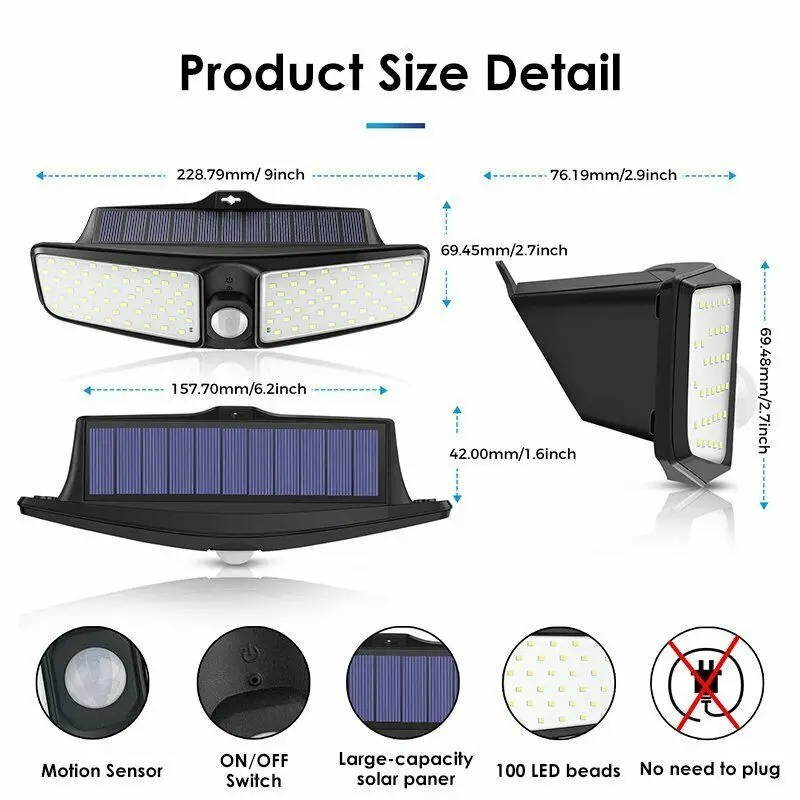 -Супер яркий: со 100 светодиодами, обеспечивает супер яркое освещение для широкого угла освещения до 180 ° и расстояние срабатывания до 26 футов.