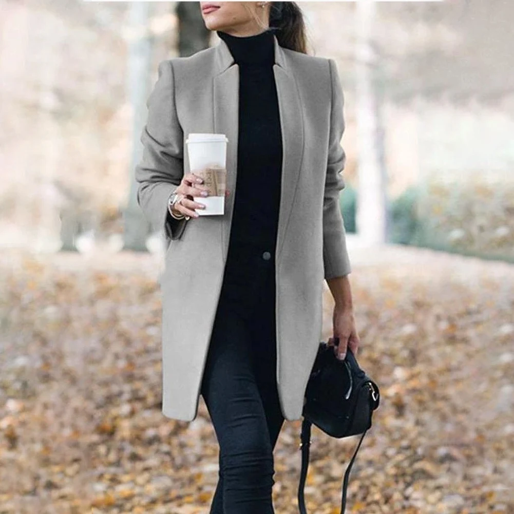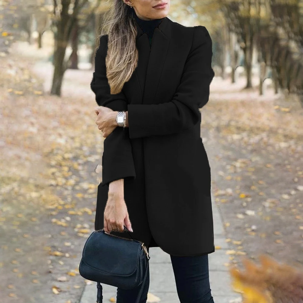 Модная женская зимняя однотонная куртка с длинным рукавом, воротник-стойка, пальто из искусственной шерсти