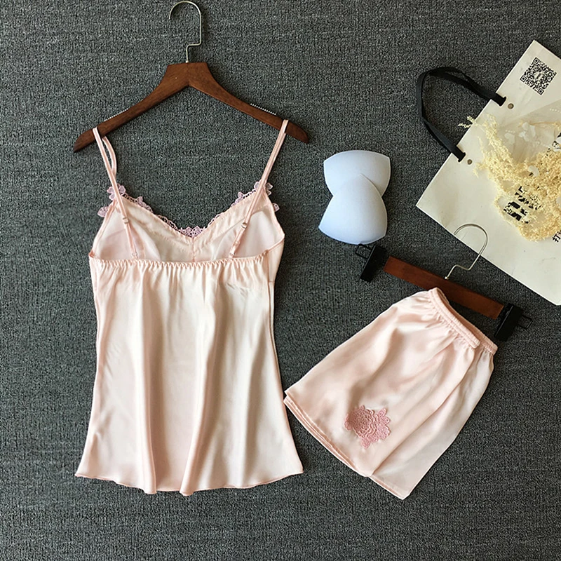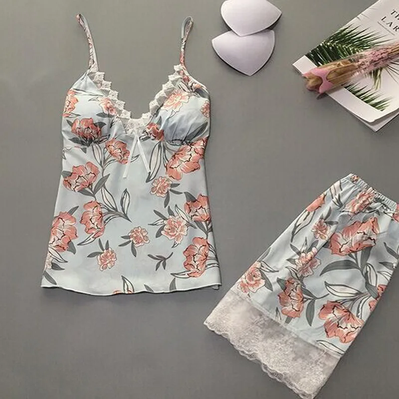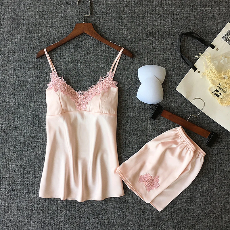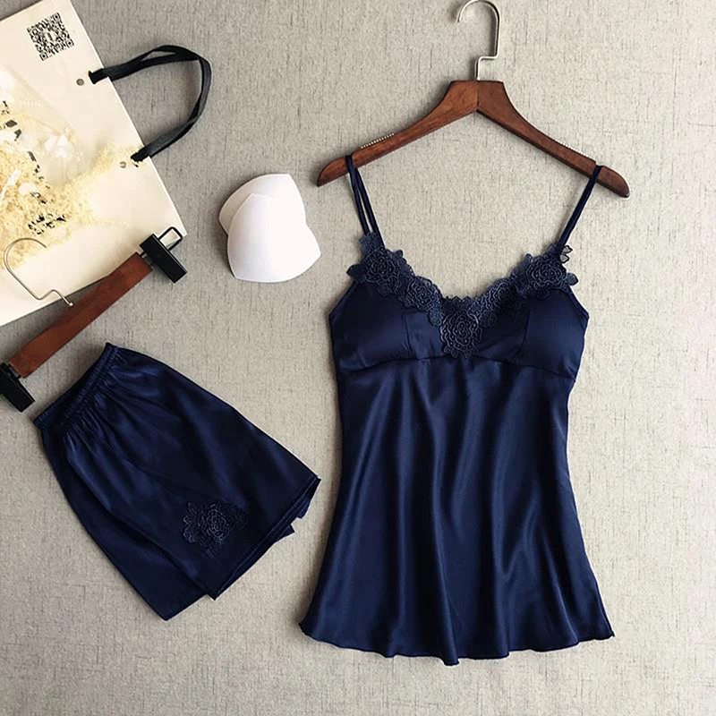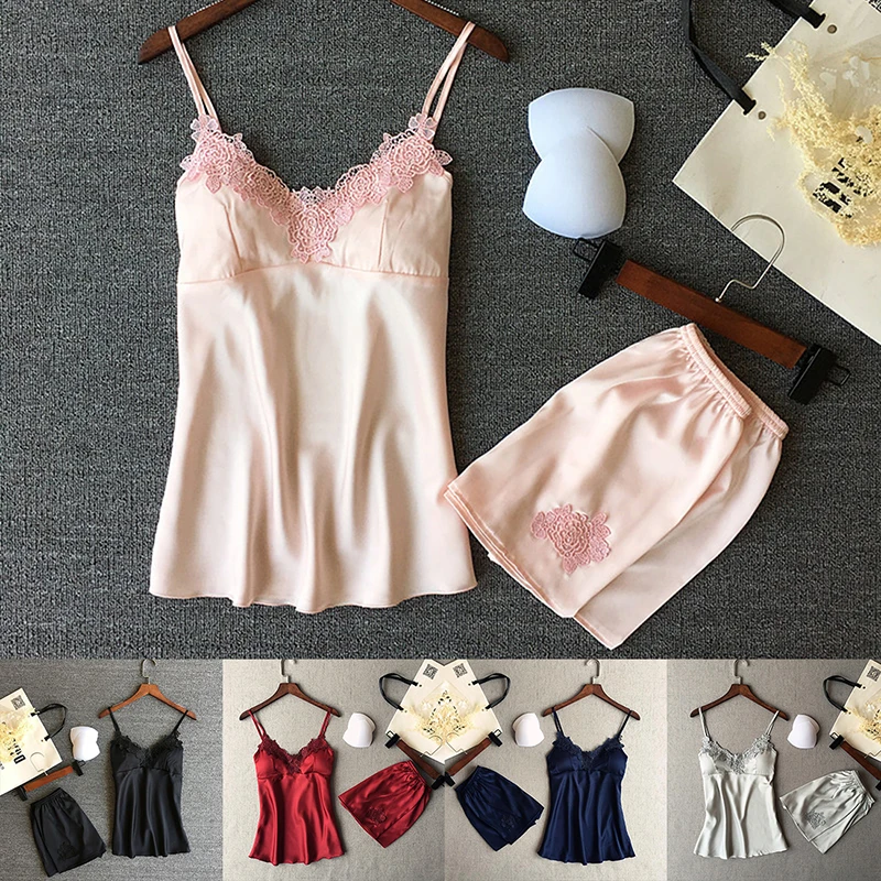 Женские пижамные комплекты, одежда для сна, 2 предмета, атласная кружевная сексуальная пижама без рукавов, Mujer, летние пижамы, нижнее белье, ночное белье, домашняя одежда.
