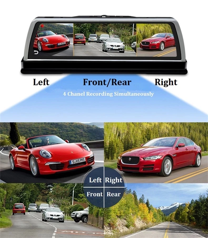 > Поставляется с объективом 4CH для безопасной парковки. Запись фронтальной и задней камеры одновременно. Камера с правой и левой глубиной для отображения изображения для безопасной парковки. Фронтальная камера 1080P, а задняя камера 720P для записи видео; Правая и левая камера 720P для отображения изображения.