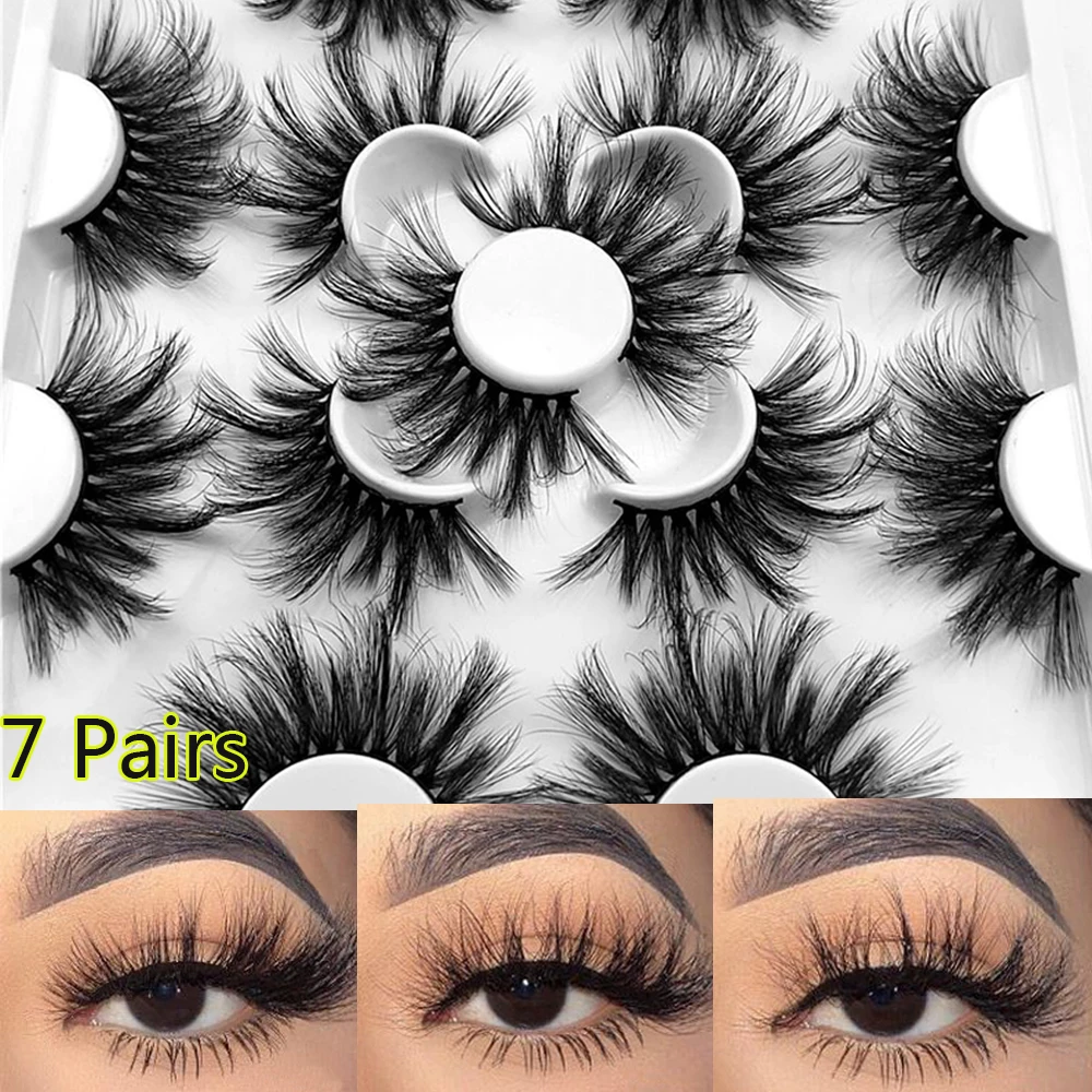 7 пар 25 мм Драматические Длинные Накладные ресницы Wispy 3D эффект норковые волосы пушистые крестовые ресницы для наращивания инструменты для макияжа глаз Cosmatics