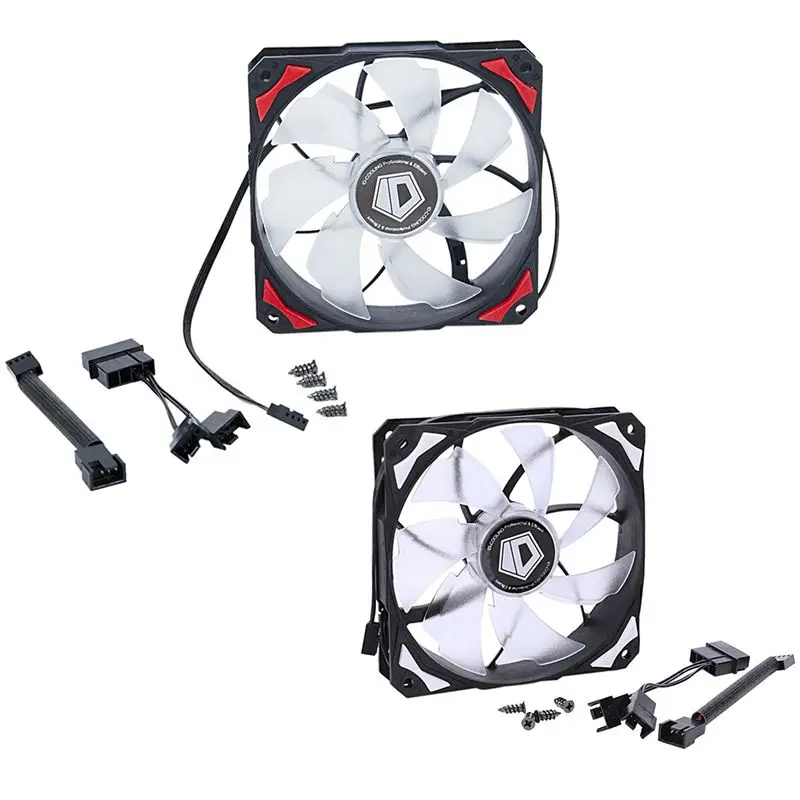 2Pcs Controller Cooler Pl- 12025 120 Mm Led Fans 4 Pin Pwm Control, Red-Black & White-Black