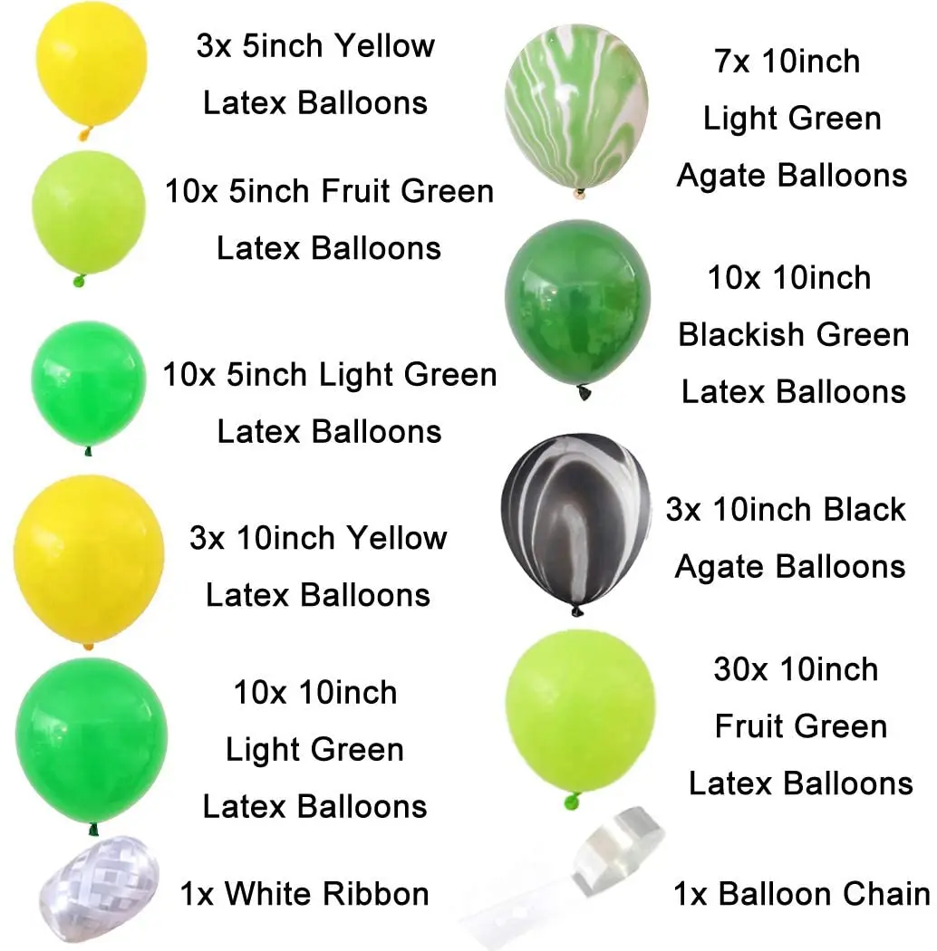 Великолепная посылка включает в себя: 11 шт. динозавров тортов, 88 шт. латексных шаров, 1 шт. фольги зеленого тираннозавра (33,9 дюйма), 1 фольга Трицератопс (37,4 дюйма). 1 шт. Фольга Диплодок (43 дюйма), 1 кокосовой пальмы (35,4 дюйма), 1 набор «С Днем Рождения» баннер (13 шт., около 2,6 метров в длину, каждая буква 16 дюймов в размере) С рисунком динозавра наклейки для временных татуировок, 1 воздушный шар цепи (9,8 ФТ)