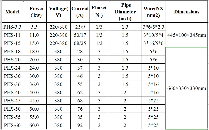 Нагреватели для бассейнов серии PHS-это оборудование большой мощности (18-60 кВт), которое используется в бассейне более 5 м3, массажном бассейне и горячих источниках для нагрева и сохранения тепла. Может быть помощником при нагреве горячего насоса. В этом продукте используется новейший регулятор постоянной температуры-традиционный магнитный переключатель потока температуры датчик замены, он значительно улучшает беспроблемность в рабочем времени, адаптируемость водной среды и стабильность.