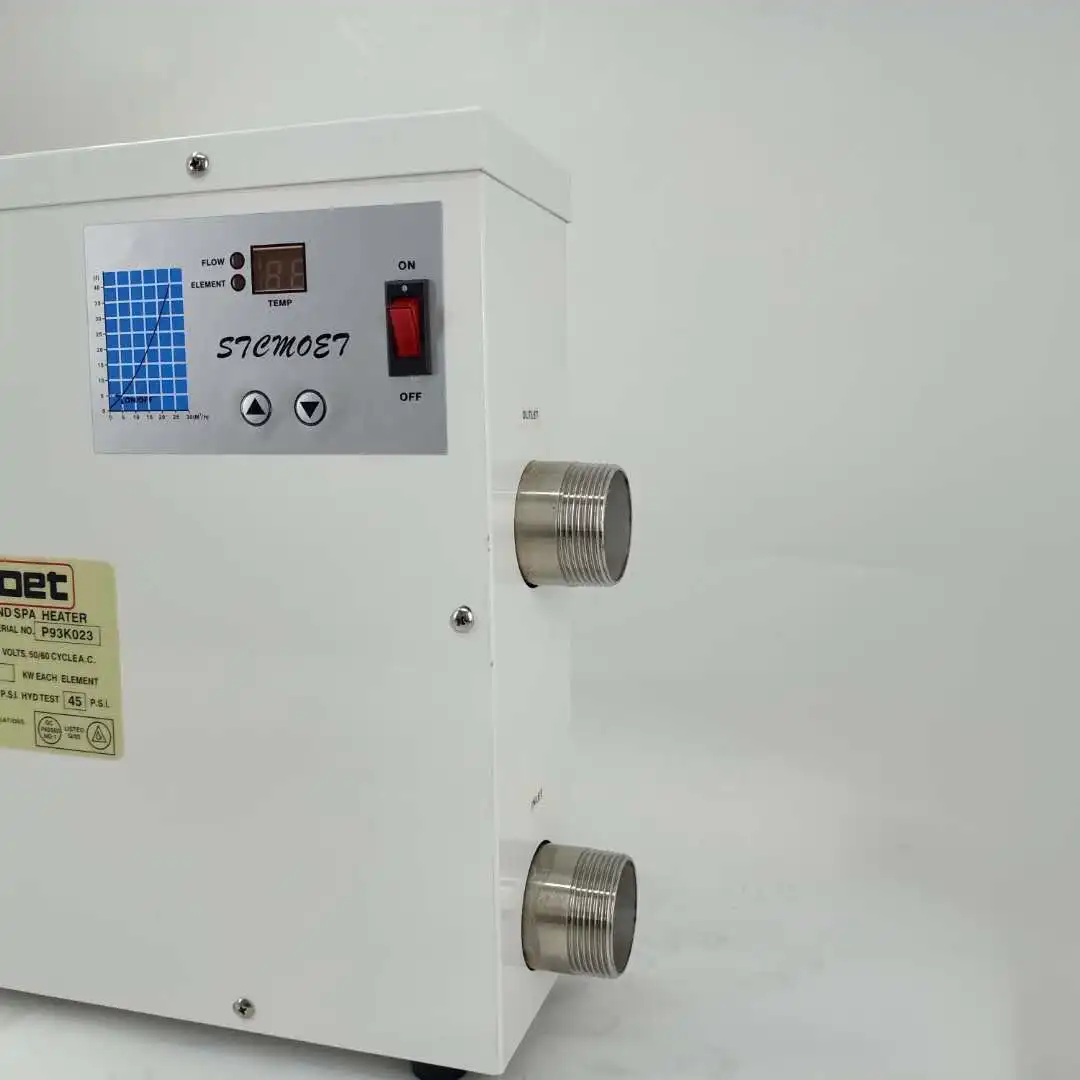Нагреватель для бассейна оснащен цифровым дисплеем, интеллектуальным контролем температуры, электрической нагревательной трубкой 316, переключателем расхода воды, защитой от сухого горения, красивым дизайном, надежной производительностью и стабильной работой.