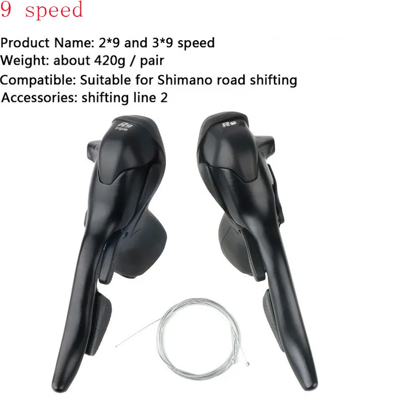 1. Чехлы (слева и справа в комплекте) 2x9 скоростей двойного переключения передач 2,1 пара кабель 1 пара кабельных маневров Shifters двойная цепь переключения передач велосипеда совместимый для Shimano