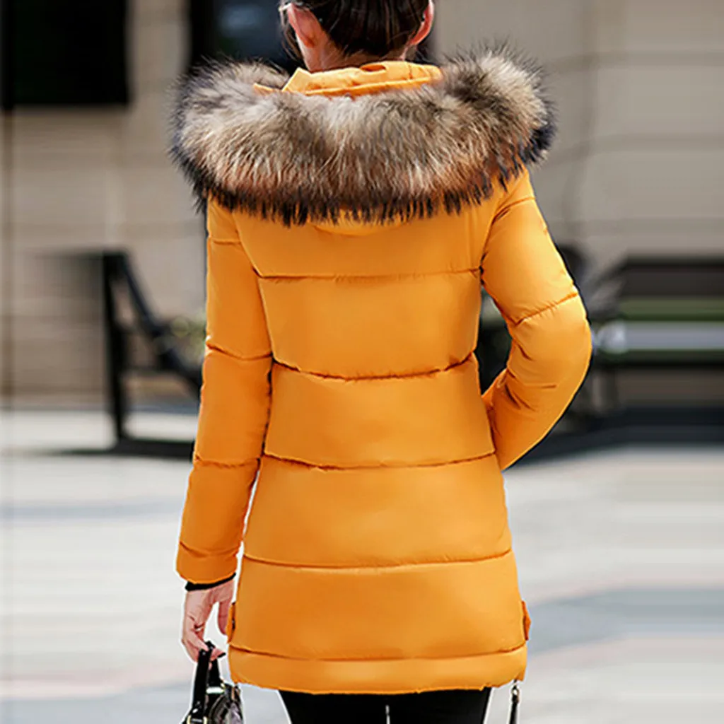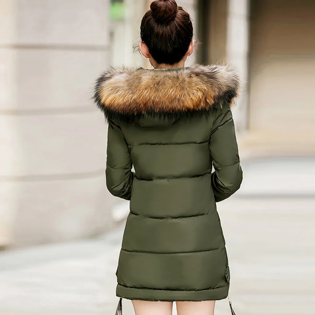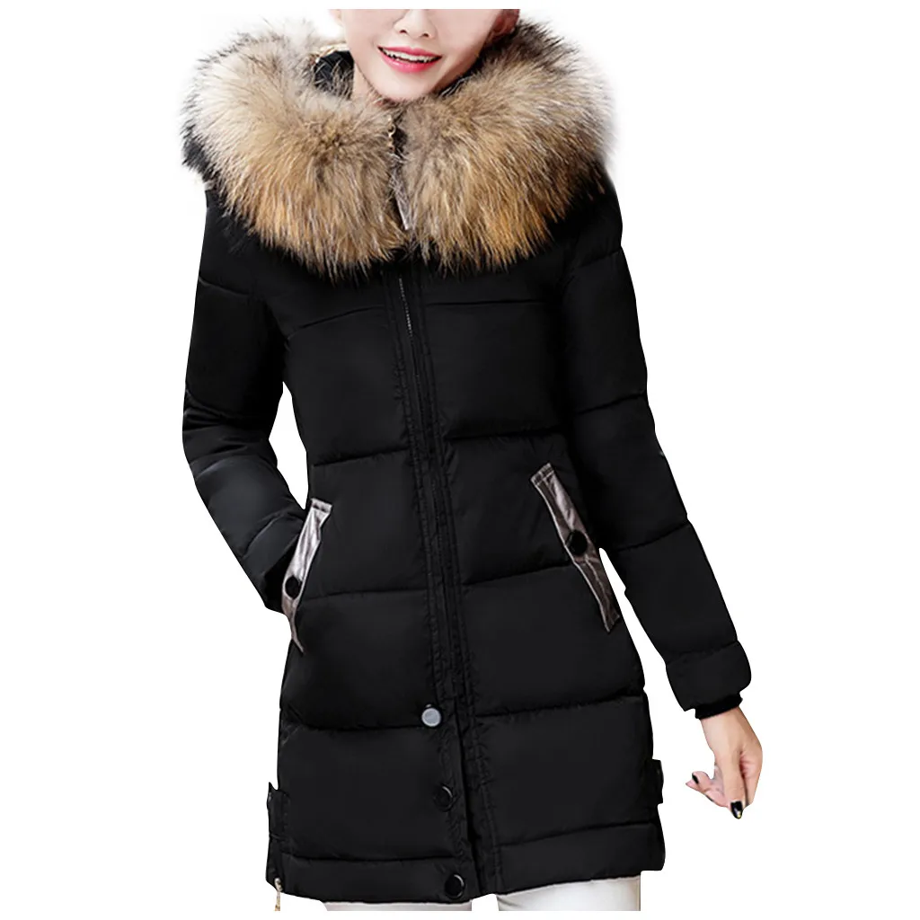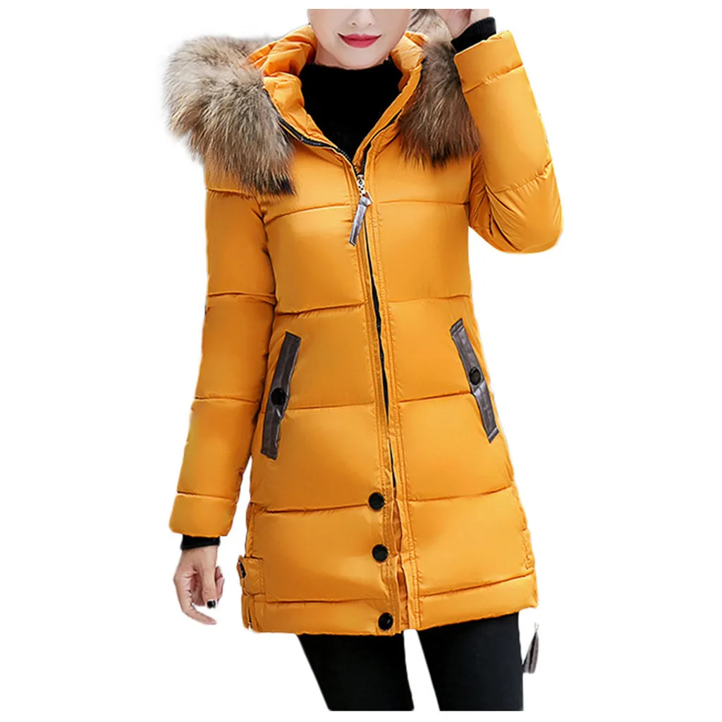 Женский модный зимний однотонный удобный длинный пуховик с капюшоном