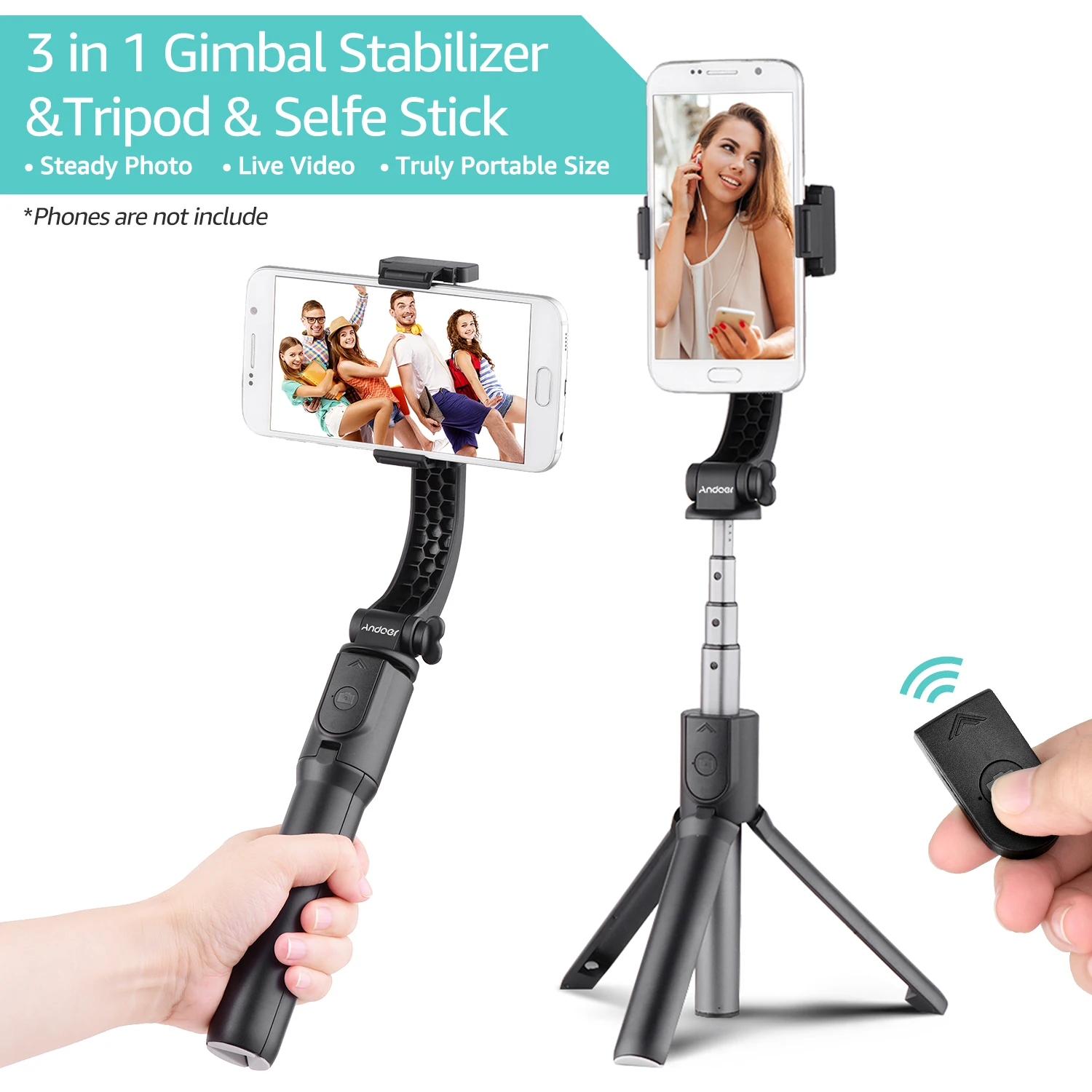 Andoer 3-в-1 Выдвижной Штатив для смартфона шарнирный стабилизатор для камеры GoPro + селфи-палка + штатив-Трипод стойка с Bluetooth пульт дистанционного спуска затвора для прямые трансляции