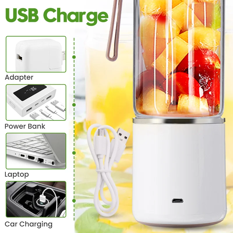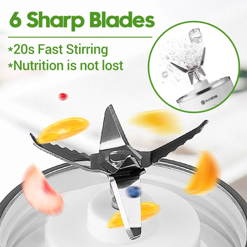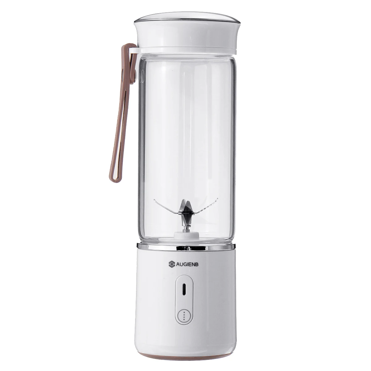 Портативный персональный блендер AUGIENB, стеклянная соковыжималка с USB-зарядкой, шесть лезвий в 3D, 500 мл с дорожной крышкой, маленький фруктовый блендер для коктейлей и смузи