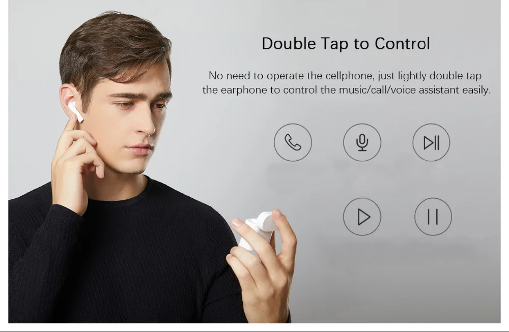 Не нужно управлять мобильным телефоном, просто слегка дважды нажмите на наушники, чтобы легко управлять музыкой/вызовом/голосовым ассистентом.