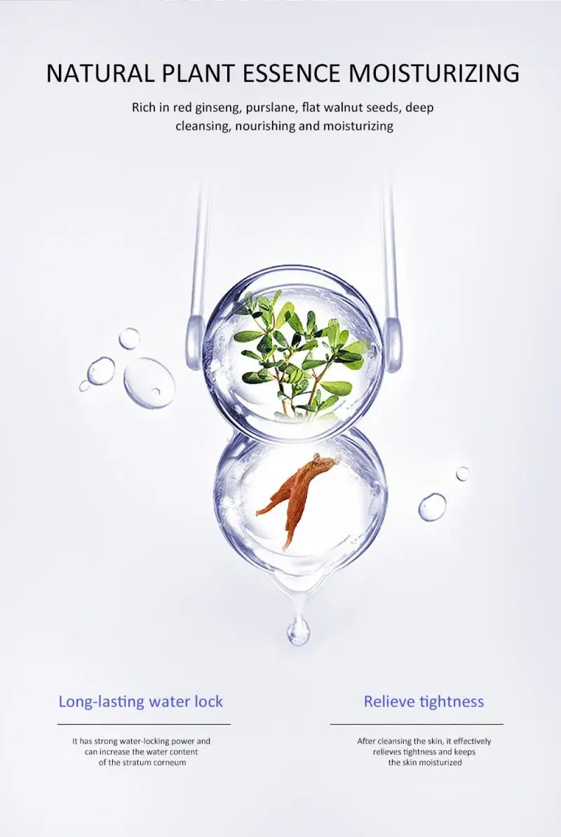 3. Добавьте экстракт солановых фруктов для очистки и контроля масла, сбалансируйте влагу и масло кожи и эффективно успокаивайте поры. Натуральная гранатовая эссенция пополняет влагу, увлажняет и питает слой слоем и эффективно осветляет кожу.
