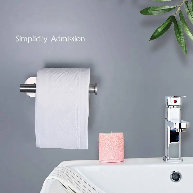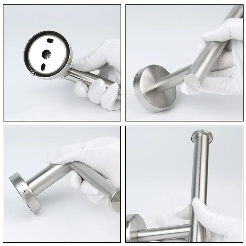 <Хорошее качество: ручка из нержавеющей стали на конце бара предотвращает падение рулона туалетной бумаги.