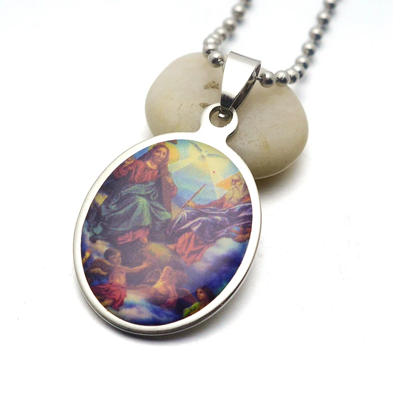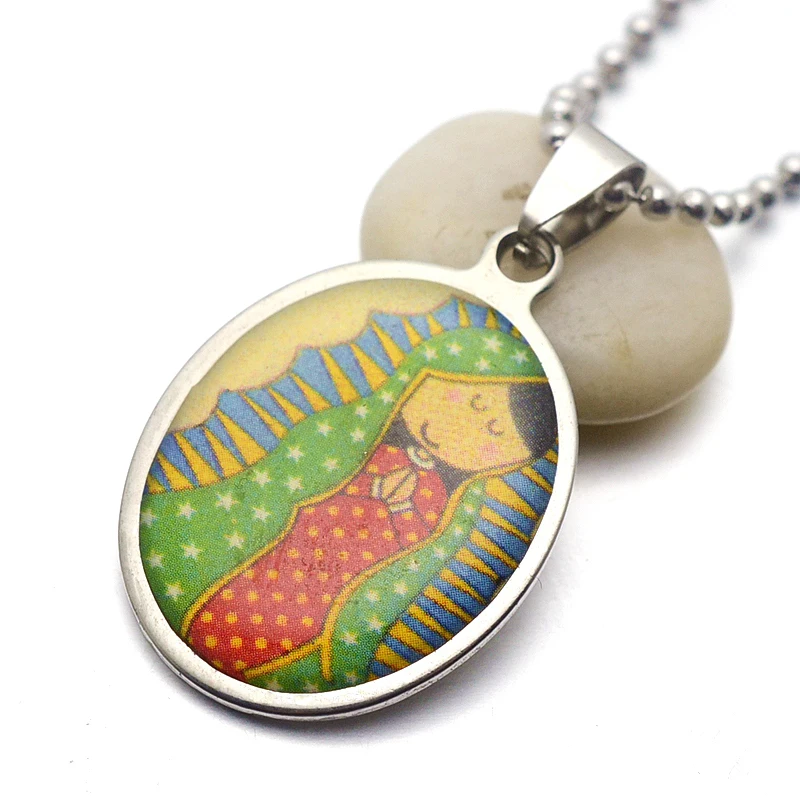 *** Из нержавеющей стали эмаль Овальный Шарм ожерелье ***